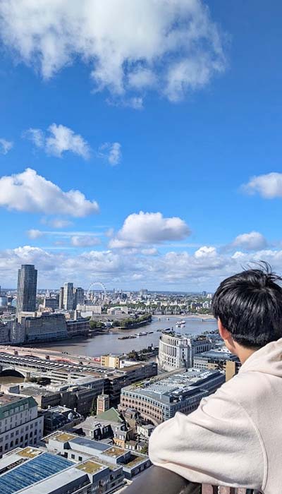 朝、ロンドンの道端を歩いていると、現地のおじさん・若者の集団から、からかわれたのが印象に残っている。(内容はあまり聞きとれなかった&覚えていないが)いわゆるアジア人差別、観光客いじりを経験して、おー実際にこんなことあるんだなあと、感慨深い気持ちになった。一方で、日本食レストランの店員さんは、日本人だと伝えると非常に喜んでくれて、「こんにちは」「ありがとう」と片言の日本語で伝えてくれた。そして、日本に対して深いリスペクトを持っていると語ってくれた。心がすさんでいる人もいれば、温かい配慮のできる人もいる。もっと様々な人と関わってみたいし、自分も魅力的な人間になりたいと思った。