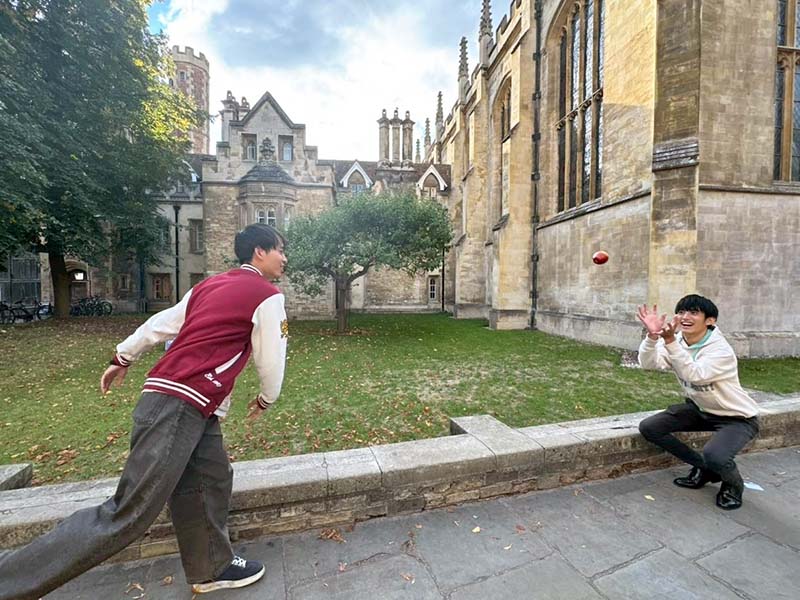 ケンブリッジ大学に3週間ほど滞在し、英語と専門科目を学ぶ短期研修である。授業は、一日英語2コマ、専門科目1コマである。九州大学の学生25名と成蹊大学の学生25名が共同で学ぶ。日本人向けの優しい英語で授業は展開されるが、PA(programme assistant)との会話や、現地のガイドツアーでは高い英語力が必要と感じる。英語は、Writing、Readingの授業とListening、Speakingの二つに分かれており、英語でのプレゼンや母音の発音トレーニング、アカデミックライティングなどを学ぶ。専門科目は選択式で、Visual Arts, Materials, Scienceから選べる。わたしはScienceを選択し、博物館や植物園、天体観測所等のフィールドワークを通してケンブリッジの科学史について学んだ。