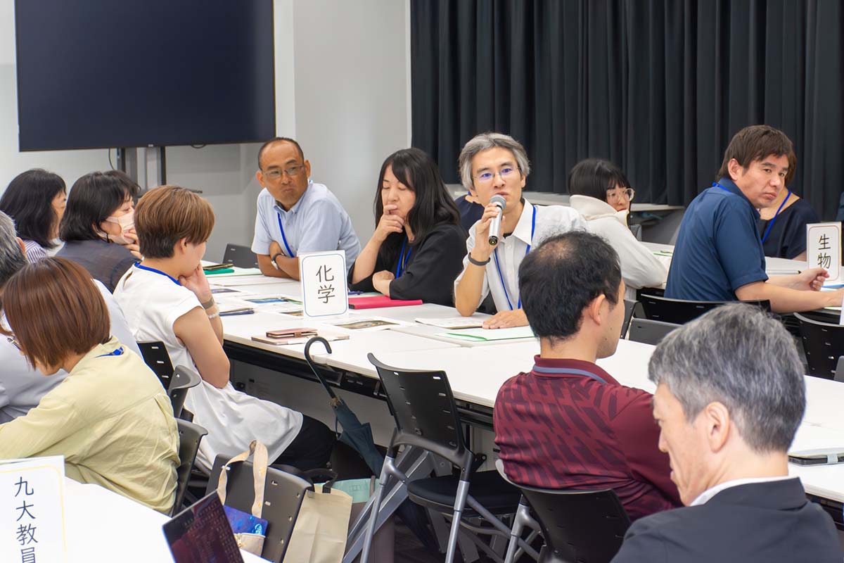 見学後に開催した懇談会では、高校教員と大学教員が積極的にコミュニケーションを取ることができ、教育現場での課題や研究内容に関する質問が活発に飛び交いました。今回の懇談会を通じて相互理解が深まり、双方にとって有意義な意見交換ができました。