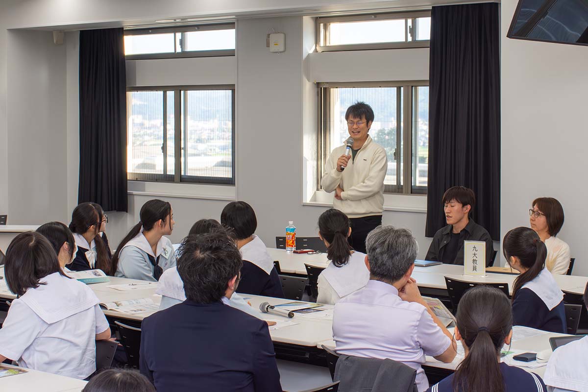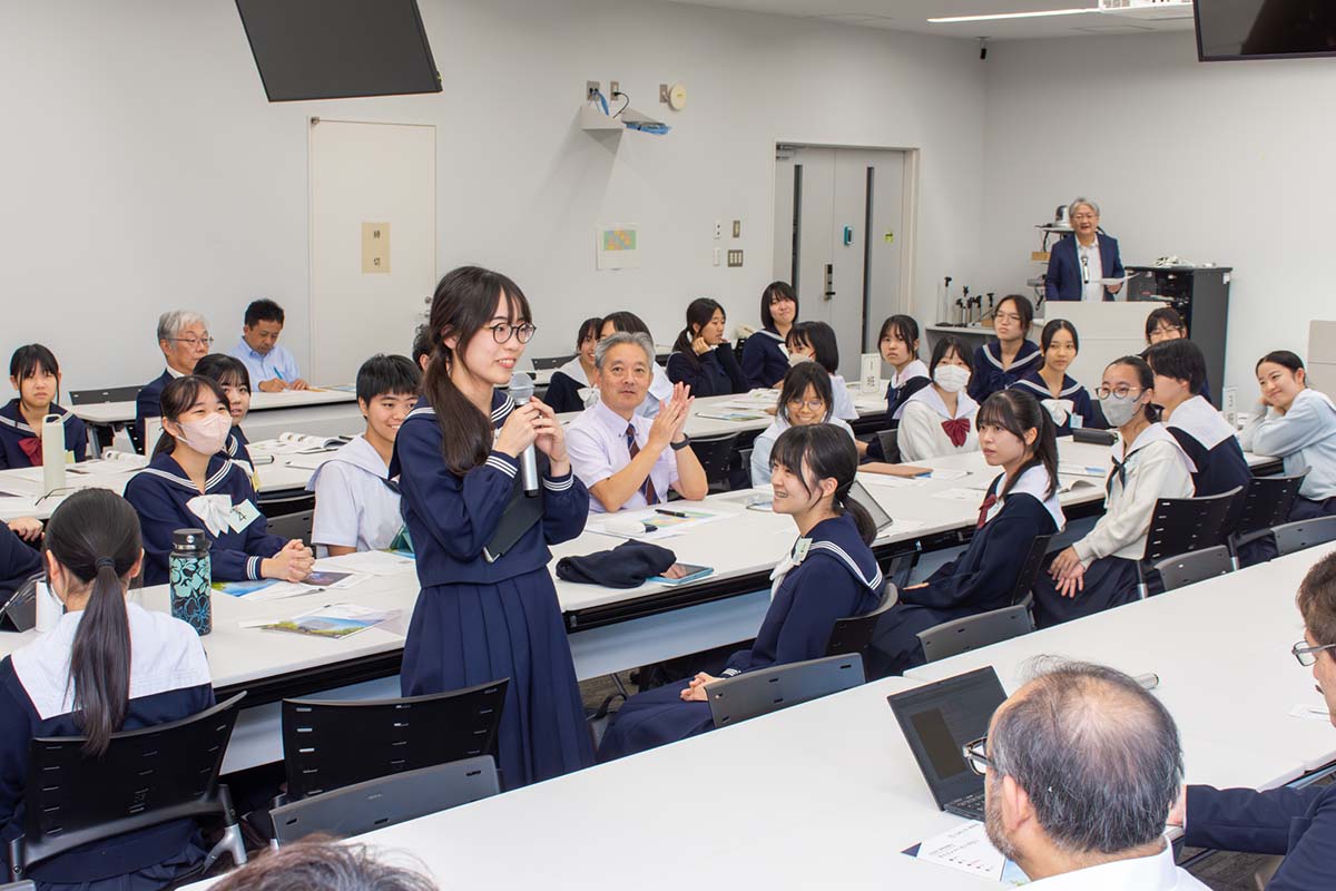 見学後の懇談会では、「研究室を見学したことで理学部へのイメージがより具体的になった」「教員の説明がとても面白く、理学部への興味が増した」などの感想が高校生から発表されました。さらに、高校生からの質問に対して教員が自身の実体験を交えて回答する場面もあり、理学部に対する理解を深めるとともに、今後の進路選択について考える良いきっかけとなりました。